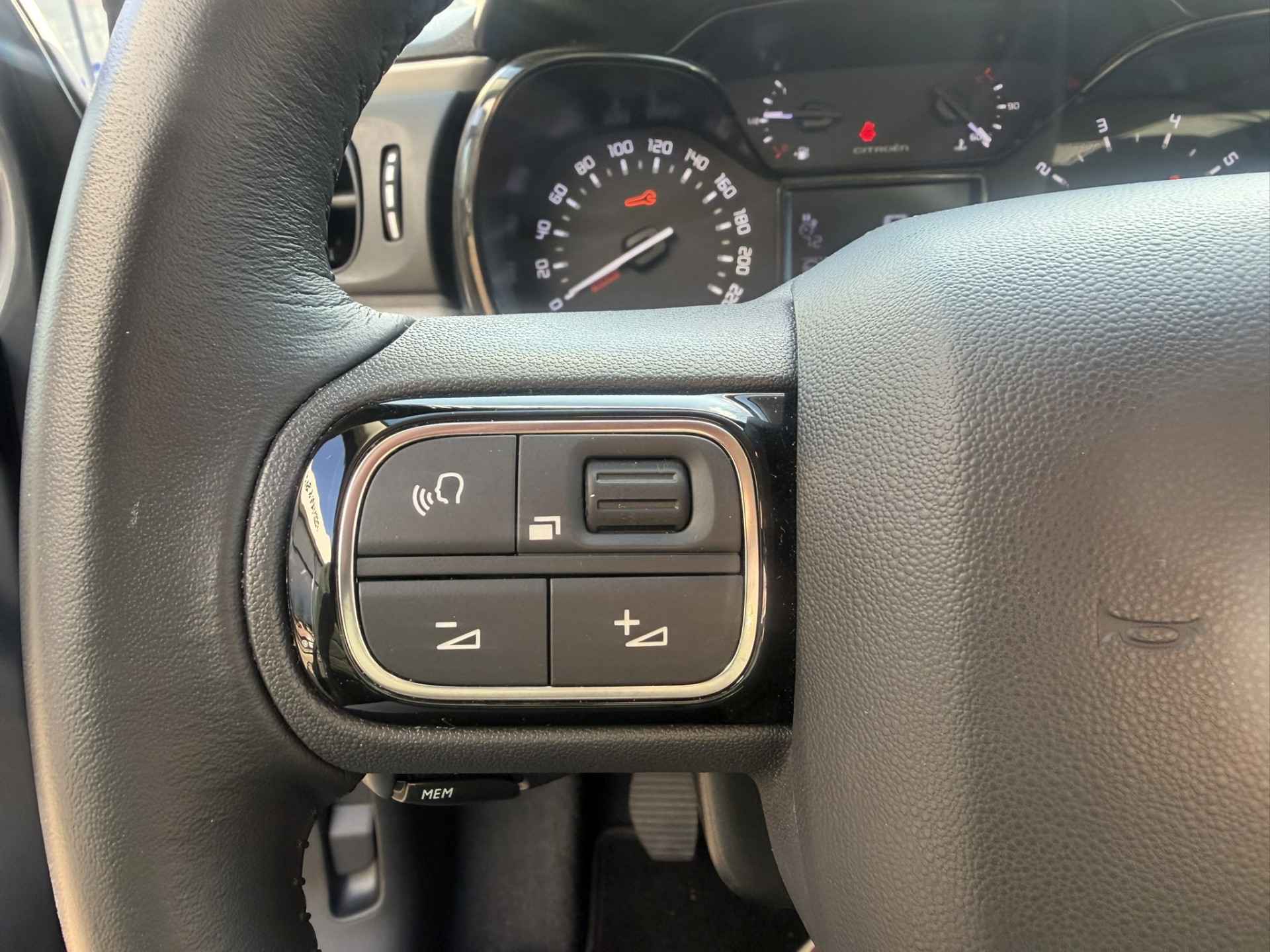 De nieuwste veiligheidssystemen komen in deze Citroën C3 samen. De actuele snelheidslimiet, een inhaalverbod en andere verkeersborden; de verkeersborddetectie ondersteunt u tijdens elke rit. Met het Lane-keeping systeem gaat u nooit onbedoeld over de streep. Het risico van een kop-staartbotsing wordt aanzienlijk verminderd door de forward collision warning. Bovenop deze veiligheidsfeatures heeft deze Citroën bovendien hill hold functie, brake assist, vermoeidheidsherkenning en bandenspanningcontrolesysteem.