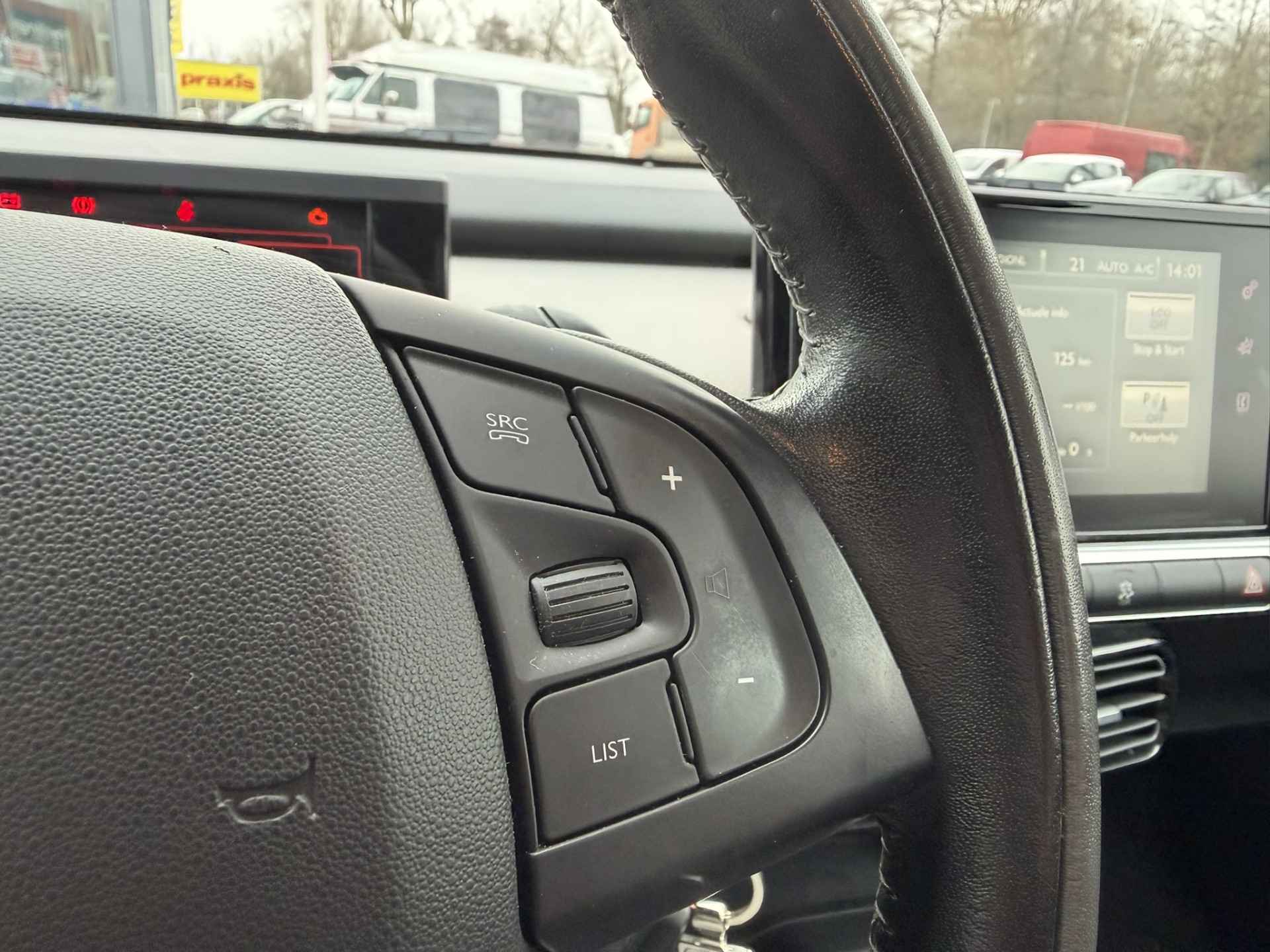 Comfortabel en veilig achteruitrijden gaat gemakkelijker dan ooit met behulp van de achteruitrijcamera. De kortste weg, de zuinigste weg, de snelste weg... elke weg is te vinden met het navigatiesysteem. Dankzij automatische airconditioning is het interieur behaaglijk warm of verfrissend koel. In deze Citroën kunt u zich concentreren op het verkeer, terwijl de auto de omgeving voor u in de gaten houdt. Een automatisch inschakelbare verlichting zorgt dat de verlichting aangaat als het donkerder wordt - in tunnels bijvoorbeeld - en de regensensor schakelt de ruitenwissers in als het nodig is. U hoeft er niets aan te doen. Met de cruise control kunt u zorgen dat u op die rechte stukken toch uit beeld blijft bij de flitsers. De uitrusting van deze Citroën is met lederen stuur en centrale deurvergrendeling met afstandsbediening behoorlijk compleet.