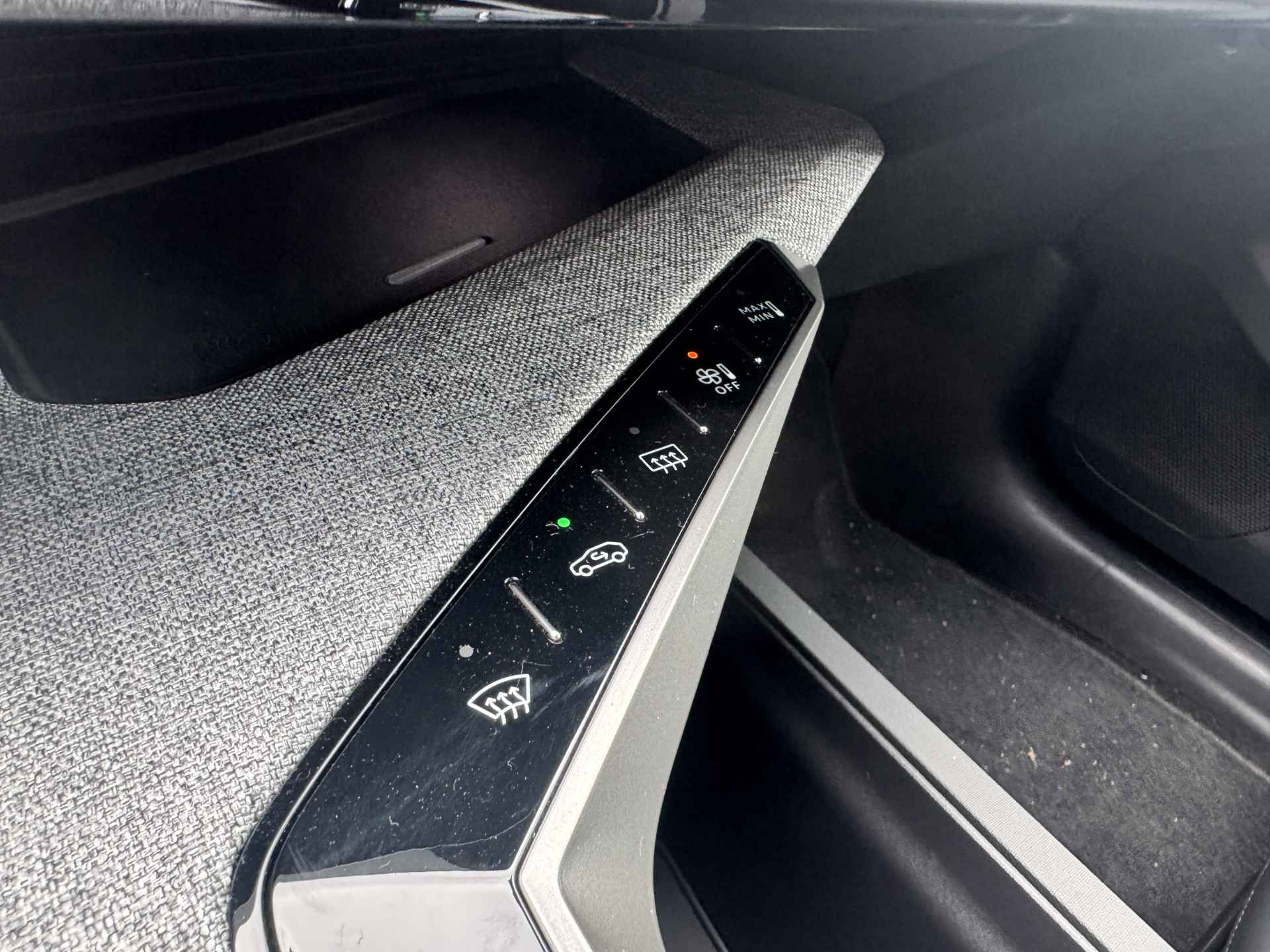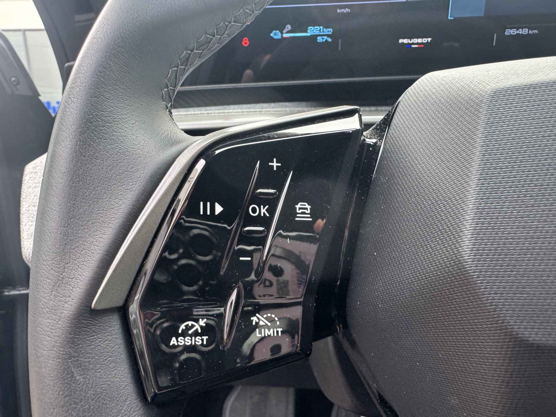 Deze auto is voorzien van een digitaal dashboard waarmee u de cockpit-interface kunt personaliseren. De achteruitrijcamera geeft u duidelijk zicht op de ruimte achter de auto. Vanaf elke plek contact maken met deze auto: dat kan met behulp van remote services, die u simpel activeert met uw smartphone. De electronic climate control zorgt voor een prettige binnentemperatuur. De DAB-ontvanger zorgt voor een ruime keuze uit digitale radiozenders en een kristalheldere geluidsweergave. U bent in deze Peugeot ook voorzien van regensensor, cruise control, keyless entry, automatisch dimmende binnenspiegel en lederen stuur.
